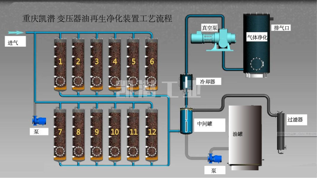 重慶凱潛工業(yè)變壓器絕緣油再生裝置結(jié)合國內(nèi)外_先進(jìn)變壓器絕緣油再生處理工藝,既能除去劣質(zhì)的變壓器油酸值、氧化物、積碳、烴、氫、乙炔、開關(guān)油中的酸性成分、懸浮物質(zhì)、沉淀物質(zhì),能使劣質(zhì)的變壓器油、開關(guān)油再生利用。